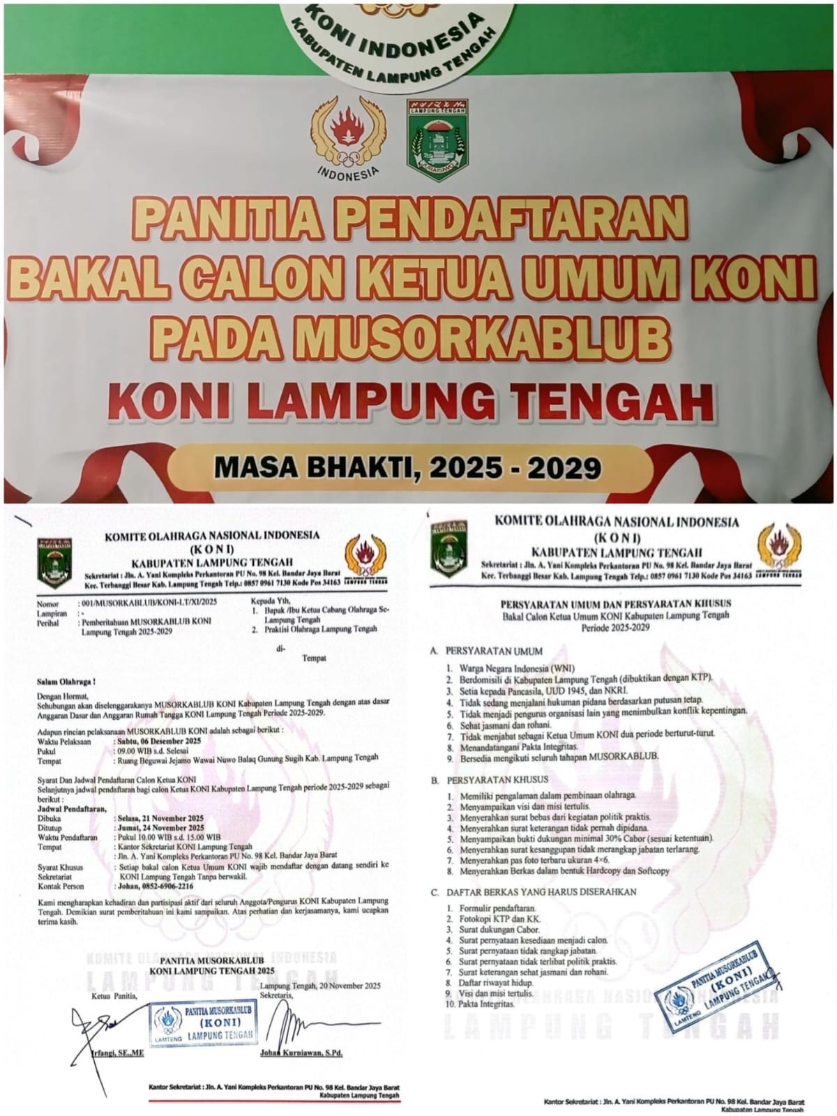 Kami Panitia Pelaksana Musorkablub,KONI Kabupaten Lampung Tengah, telah memulai langkah konkret dengan mempersiapkan panitia pendaftaran bakal calon Ketua Umum untuk periode 2025.